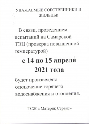 ОТКЛЮЧЕНИЕ ГОРЯЧЕЙ ВОДЫ с 14-15 апреля 2021г